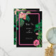 A modern yet retro themed neon pink tropical botanicals on a black background. A beautiful wedding design ideal for summer. Perfect neon pink tropical plants design featuring palm trees, pink Hibiscus flowers and Plumerias Frangipanis flowers. Black, pink, and green colours dominate this tropical pink neon design. The modern calligraphy typography contrast perfectly against the black and pink wedding themed design. A classy elegant wedding thank you card design with modern simple elements. Matching wedding stationery items and other wedding invite formats are also available.