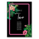 A modern yet retro themed neon pink tropical botanicals on a black background. A beautiful wedding design ideal for summer. Perfect neon pink tropical plants design featuring palm trees, pink Hibiscus flowers and Plumerias Frangipanis flowers. Black, pink, and green colours dominate this tropical pink neon design. The modern calligraphy typography contrast perfectly against the black and pink wedding themed design. A classy elegant wedding table number card design with modern simple elements. Matching wedding stationery items and other wedding invite formats are also available. Customise the number and purchase each tables number individually according to how many table numbers you need.