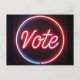 Neon lights form a circular design with the word "VOTE" displayed on a black background
