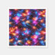 Vibrant neon abstract polygon shapes bursting with explosive sparks on a striking black background.