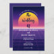 Neon Purple Retro 80s Synthwave Sunset Wedding Invitation
