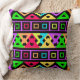 Vibrant neon rainbow geometric pattern with triangles, squares, circles and zigzags on a deep black background. Bold, eye-catching all-over print for throw pillows, apparel, tech cases and modern decor.