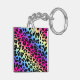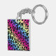 Neon Rainbow Leopard Pattern Print Key Ring