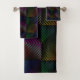 Neon Rainbow Prism Squares On Black Bath Towel Set