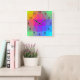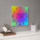 Pretty neon abstract triangles cover this wonderful square wall clock.