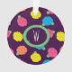 Stylised roses in bright neon pink, blue, yellow, and coral with neon green leaves are spangled across a deep purple background to create a fun floral pattern. Customise the monogram on this ornament with your initial to make it your own.