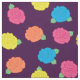 Stylised roses in bright neon pink, blue, yellow, and coral with neon green leaves are spangled across a deep purple background to create a fun floral pattern.