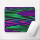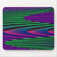 This mousepad features a digitally created image that resembles a series of gentle waves rippling against a calm shore. The waves are vivid neon shades of green, pink and blue and have a 3D quality.