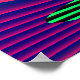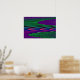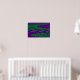 This poster features a digitally created image that resembles a series of gentle waves rippling against a calm shore. The waves are vivid neon shades of green, pink and blue and have a 3D quality.