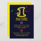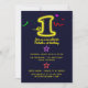 Brightly coloured 1st Birthday invitations featuring a neon "1", stars and confetti.