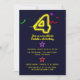 Brightly coloured 4th Birthday invitations featuring a neon "4", stars and confetti.
