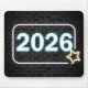 Glowing 2026 neon sign with a star on a dark gray brick wall