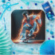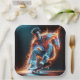 Neon Skateboarder With Fiery Light Trails Paper Plate