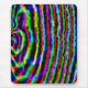 A clam shell pattern of bright neon lights on a dark background make for a super cool skateboard.