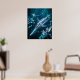 A sleek neon swordfish races through futuristic ocean depths, built from chrome scales, glowing propulsion lines, illuminated fins, and a razor-sharp energy blade. Electric blue, cyan, violet, and silver light streaks across its streamlined body, capturing pure speed and elegance. Tunnels of light, glowing reefs, bubbles, motion trails, suspended particles, and deep dark water enhance the cinematic rush. This premium marine design is perfect for offices, gaming rooms, coastal interiors, and collectors who love dynamic ocean creatures.