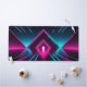 Enter the digital grid and elevate your gaming battle station with this spectacular synthwave desk mat. This massive horizontal canvas seamlessly transports you into a retro-futuristic virtual reality tunnel. Featuring brilliant neon magenta and electric cyan glowing pyramid arches set over a dark, highly reflective glossy floor, this artwork flawlessly captures the intense, high-energy aesthetic of 80s outrun and modern cyber-pop culture.