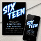 Give your party a major shine with this neon blue 16th birthday invitation for boys. The bold typography and exciting neon effect give this design a fun, masculine vibe. Perfect for your favourite teen boy's birthday or arcade party. Order your printed invitations and party supplies or download your digital invitations now for a day they'll never forget!