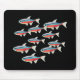 Neon Tetra design shows a school of swimming neon tetras. Hand drawn graphic of this popular tropical aquarium fish for fans and keepers.