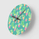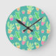 Neon Watercolor Cactus In Pots Pattern Round Clock
