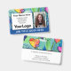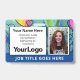 This custom employee ID badge showcases a vivid watercolor swirl with electric blue, turquoise, and deep indigo tones, accented by pops of neon pink, green, and orange. The design blends cool and warm neon colours in abstract motion, creating subtle heart-like shapes that pulse with energy. Add a company logo, photo, employee name, and title on the front, plus extra info on the back. Ideal for artistic brands, creative teams, or modern office vibes.