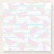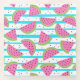 Neon Watermelon on Stripes Pattern Glass Coaster