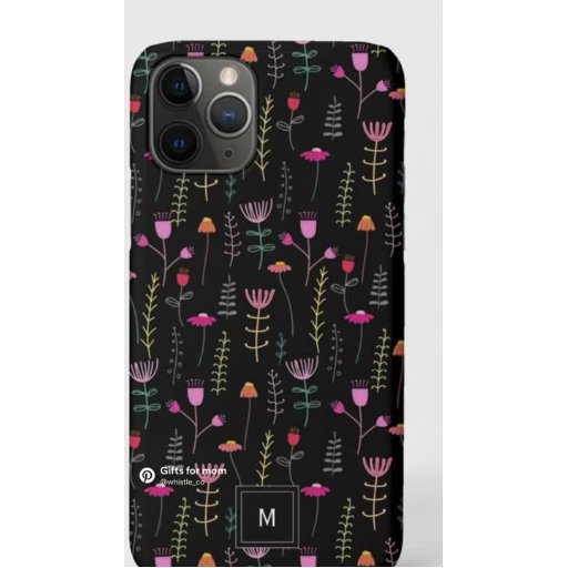 Easy to personalise with your initial. A bold, modern design featuring neon flower & plant illustrations on a simple black background. Cute and chic, ideal for anyone who appreciates a retro aesthetic and bright florals.
