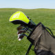 Branded golf head cover in a vibrant neon yellow. In the center is a large cover logo. Personalize this item immediately. Alma Wad's design is stylish and modern.