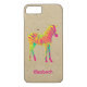 Personalised phone case with a funky, sixties style psychedelic illustration of a baby zebra in neon colours of bright yellow, hot pink and mint green. Wild and fun with a creative artsy flair. Set on a faux craft paper background. Customise with your own name or other text.