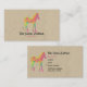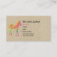 A business card template for zebra themed businesses or names. with a funky, sixties style psychedelic illustration of a baby zebra in neon colours of bright yellow, hot pink and mint green. Wild and fun with a creative artsy flair. Set on a faux craft paper background.