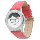 Custom funny wrist watch for nerds featuring a black and white vector illustration of hipster hair and nerd glasses. You can change the background colour and personalise this watch with custom text.