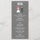 Get your nerd on! This fun and geek, yet simple and chic save the date wedding menu features 8-bit bride and groom characters with red accents gazing at each other against a silver grey background. Bride has red hair and red bouquet