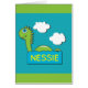 An adorable green loch ness monster with green scales on his back, with the name Nessie.