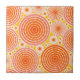 Radient spoked wheels-within-wheels in shades of orange and peach with a mustard gold background