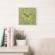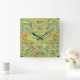 Need more time? This is the clock for you. Numbers are arranged counter-clockwise for people who are forever short on time - or for those who simply would like to turn the clock back to an earlier time. Fun and crazy abstract design in yellow and aqua. Available as a square clock or round.