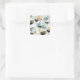 Square sticker with mosaic of nests, birds, flowers and old cards.