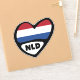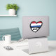 A cool, cartoon style heart design with the flag and the 3 letter country code of the country.