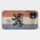 Dutch lion playing with the ball on the field that looks like distressed flag of Netherlands.