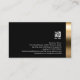 This striking professional network engineer computer and IT technical skills bold black business card features a elegant faux/photographic gold reflection stripe on the lower border. Your name and title appear just above this patterned border, over a jet black background. The same patterned theme appears on the back of the card, except the stripe is on the right border. Your business logo and contact details appear on the black section of the card. This business card design makes a striking first impression and is Perfect for computer, engineering, technical, technology, internet, online, web, it, information technology, computer repair, computer services, high impact, active, classy, elegant, gold, black, professional, strong themes.