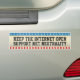 Network neutrality in the United States is a current issue subject to regulatory and judicial contention among network users and access providers. Say no to restrictions! Keep the internet open and support net neutrality with this bumper sticker.