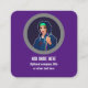 A female security analyst pulling the plug on hackers, this woman wears a hoodie and is an inspirational image for girls and women in tech. Her neon visor gives a futuristic touch to cybersecurity as she fights cyber crime and online fraud. You have multiple customisation options on this purple and grey design, plus a space for your own website or profile's QR code on the back.