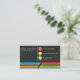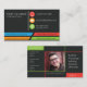 A business card design which can be used as a resume or CV at the same time. Space included for social media, so a good networking tool. Modern design. Every text and the profile image must be personalised. Motto may be deleted, left, or personalised. Both front and back of the card are important. One emphasizes the contacts, the other the experience and the skills.