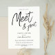 Create professional networking event flyers for your business with this minimalist Meet & Greet Invitation design. This simple black and white company invite is great to use for meet & greet events, networking cocktails and more. Featuring handwritten fonts, simple, yet chic design, this business event marketing flyer is fully customizable so you can tailor it to suit your brand and event aesthetic.