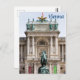 A photograph of the Neue Hofburg viewed from Heldenplatz in Vienna Austria is featured on this postcard.