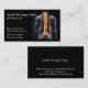 A custom design showing an illustration of the human spine. This card is intended for someone who is a Neurologist or Neuro Surgeon and can be also be used by a clinic or a regular physician doctor or pain management clinic. Business card has a black background and is easy to edit with your business information.