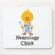 A yellow chick holds a Queen's Square reflex hammer while wearing blue scrubs with a stethoscope around her neck and a lab coat with a pen in pocket on Neurology Chick t shirts, stationery and more medical theme merchandise and apparel. These items make a cute and funny neurology gift for a medical student graduate, resident, intern, physician, pre med student or female neurologist. Studios, LLC.