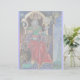Colourful, vibrant , contemporary painting in gold ,blue,red,green,brown colours . A mysterious hypnotic sorcerer with elegant gorgeous red velvet costumes holding a magic sphere sitting on a gothic throne with gargoyles and an owl. Ambient is surreal,fantastic ,alchemic where you see a jester is drinking from a cup, a templar monk flying on a frog,transparent bubbles,fantasy landscapes with hell fire,cosmic blue sky with stars , mountains of heaven,trees .Egg Tempera on wooden panel with golden foil. 1989 , Miniature Made with pictorical techniques of 1300 by Alessandro Lumini (c) It is also a beautiful fantasy design for Christmas,Holiday,Birthday,New Year's Eve day, Mardi Gras and Carnival greetings.