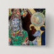 Colourful, vibrant , contemporary painting in gold ,blue,red,green,brown colours . A mysterious hypnotic sorcerer with elegant gorgeous red velvet costumes holding a magic sphere sitting on a gothic throne with gargoyles and an owl. Ambient is surreal,fantastic ,alchemic where you see a jester is drinking from a cup, a templar monk flying on a frog,transparent bubbles,fantasy landscapes with hell fire,cosmic blue sky with stars , mountains of heaven,trees .Egg Tempera on wooden panel with golden foil. 1989 , Miniature Made with pictorical techniques of 1300 by Alessandro Lumini (c) It is also a beautiful fantasy design for Christmas,Holiday,Birthday,New Year's Eve day, Mardi Gras and Carnival greetings.