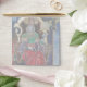 Colourful, vibrant , contemporary painting in gold ,blue,red,green,brown colours . A mysterious hypnotic sorcerer with elegant gorgeous red velvet costumes holding a magic sphere sitting on a gothic throne with gargoyles and an owl. Ambient is surreal,fantastic ,alchemic where you see a jester is drinking from a cup, a templar monk flying on a frog,transparent bubbles,fantasy landscapes with hell fire,cosmic blue sky with stars , mountains of heaven,trees .Egg Tempera on wooden panel with golden foil. 1989 , Miniature Made with pictorical techniques of 1300 by Alessandro Lumini (c) It is also a beautiful fantasy design for Christmas,Holiday,Birthday,New Year's Eve day, Mardi Gras and Carnival greetings.