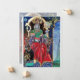 Colourful, vibrant , contemporary painting in gold ,blue,red,green,brown colours . A mysterious hypnotic sorcerer with elegant gorgeous red velvet costumes holding a magic sphere sitting on a gothic throne with gargoyles and an owl. Ambient is surreal,fantastic ,alchemic where you see a jester is drinking from a cup, a templar monk flying on a frog,transparent bubbles,fantasy landscapes with hell fire,cosmic blue sky with stars , mountains of heaven,trees .Egg Tempera on wooden panel with golden foil. 1989 , Miniature Made with pictorical techniques of 1300 by Alessandro Lumini (c) It is also a beautiful fantasy design for Christmas,Holiday,Birthday,New Year's Eve day, Mardi Gras and Carnival greetings.