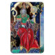 Colourful, vibrant , contemporary painting in gold ,blue,red,green,brown colours . A mysterious hypnotic sorcerer with elegant gorgeous red velvet costumes holding a magic sphere sitting on a gothic throne with gargoyles and an owl. Ambient is surreal,fantastic ,alchemic where you see a jester is drinking from a cup, a templar monk flying on a frog,transparent bubbles,fantasy landscapes with hell fire,cosmic blue sky with stars , mountains of heaven,trees .Egg Tempera on wooden panel with golden foil. 1989 , Miniature Made with pictorical techniques of 1300 by Alessandro Lumini (c) It is also a beautiful fantasy design for Christmas,Holiday,Birthday,New Year's Eve day, Mardi Gras and Carnival greetings.